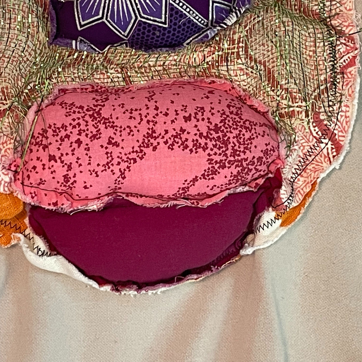 Expect minor shrinkage and natural ragging of the appliqué over time. This adds to the character of the piece.